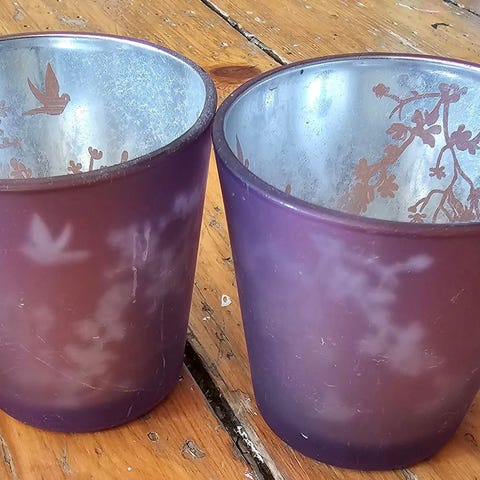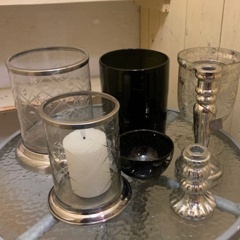 1 Lyslykt i glass mat grå med motiv i gullfarge