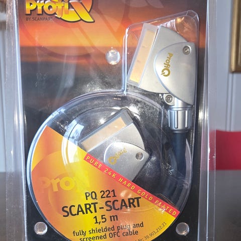 Selger en Hama Pro Class Home Theatre SCART-kabel, 1,5 meter, helt ny og ubrukt i originalpakning. Dette er en av de bedre SCART-kablene Hama lagde, med ekstra god skjerming og solide metallplugger.