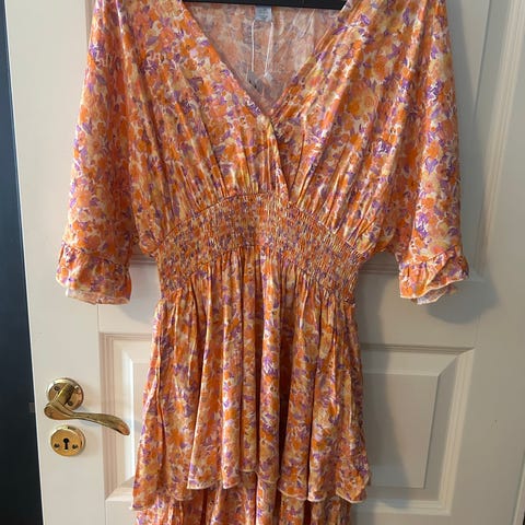 Holly & Whyte hverdagskjole i størrelse XL, laget av polyester. Kjolen har en oransje farge med mønster og er designet for kvinner.