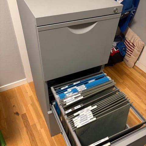 IKEA Arkiv skuffeseksjon med 3 skuffer i grå metall. Passer til oppbevaring av dokumenter og kontorutstyr. Skuffene har håndtak for enkel åpning. Produktet viser noen bruksmerker på toppen. Må hentes i Ekebergveien 1.
