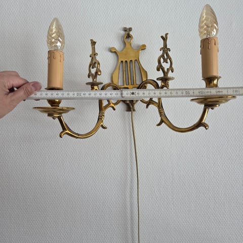 Vegglampen ble kjøpt i Italia på 1980-tallet. Den er gedigen og solid, slett ingen lettvekter.