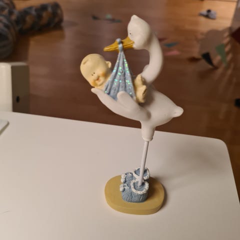 Pen brukt pynt ble kjøpt til Dåp og etterpå stått på hylle som pynt i jenterom.
