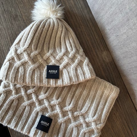 Nytt hals og pannebånd i 100% merinoull. Ubrukt lue i ullblanding frå Safa. Brukt genser frå Snjor i ullblanding. Kr 300.