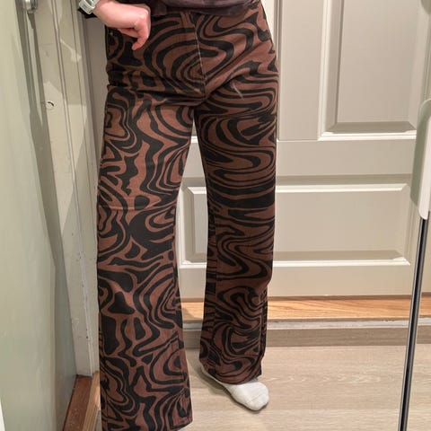 Rutete bukser med vide ben, 100% viskose. Veldig komfortable og myke.
