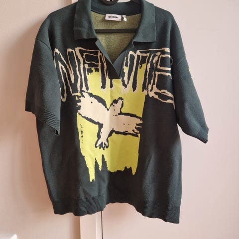 Størrelse: lappen heter L, antakeligvis kort for Latterlig da t-skjorta er en nokså tettsittende S. Vil passe fint XS også, om du vil ha det litt romsligere.
