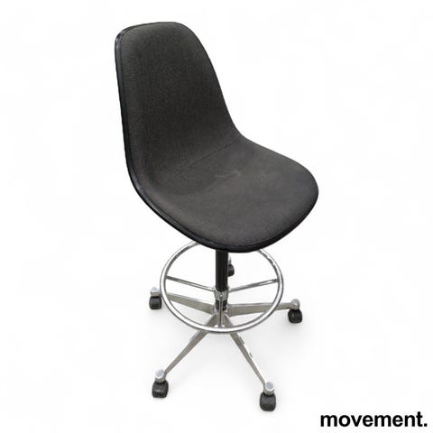 Rookie High fra Vitra er en kompakt og fleksibel arbeidsstol med lift og fotring, designet av Konstantin Grcic. Stolen er laget for dynamiske arbeidsmiljøer og høye bord, der brukeren trenger både bevegelsesfrihet og støtte.