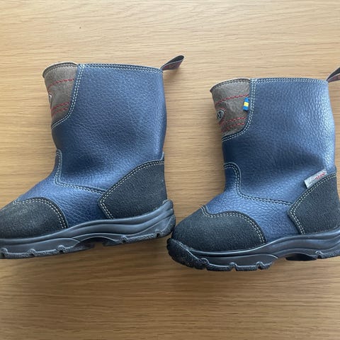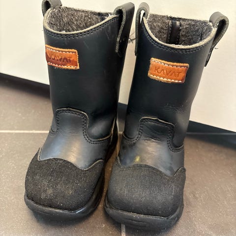 1 par Kavat barnevintersko i størrelse 22 for unisex. Skoene har borrelåslukking for enkel tilpasning og er egnet for bruk i kalde værforhold. Sålen har godt mønster for grep. Disse skoene er godt brukt.