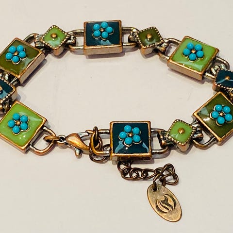 Arvegods. Veldig aktuelt nå. Armbånd 15 cm. Skinnende gull som blir litt grått på bildet.