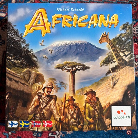 Africana er et lett tilgjengelig, familievennlig strategispill der spillerne reiser gjennom Afrika for å oppdage nye områder, følge ekspedisjonsruter og samle verdifulle gjenstander. Du planlegger turene dine smart for å fullføre ekspedisjoner før de andre, samtidig som du oppgraderer utstyr og samler bonuser. Spillet kombinerer enkel mekanikk med taktiske valg, og passer godt for både nye og erfarne brettspillere.