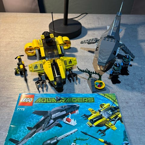 LEGO Technic undervannsfarkost sett i rød og svart farge. Inkluderer bevegelige armer og propeller. Egnet for bygging og lek med tekniske funksjoner. Selges samlet med hai med propeller og klør