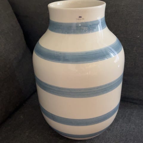 Stor Kahler vase hvit/lys blå - 30 cm høy