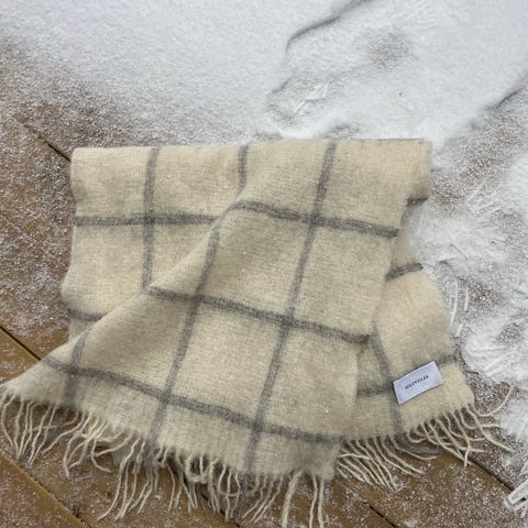 "Dipper Check" fra Holzweiler. Mykt skjerf i ull og kashmire. Ullskjerfet har rutete mønster i lyse toner. Det perfekte skjerfet til høst/ vinter. Laget i Italia.