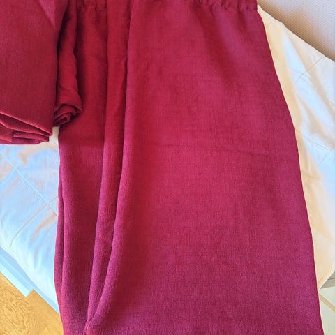 Mørkerøde flotte julegardiner fra Kid, 5 lengder.