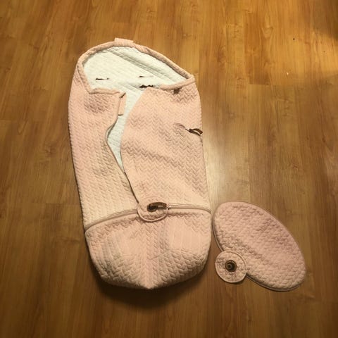 Sovepose vognpose med forlenger del. Pent brukt, men har noen bruksmerker.