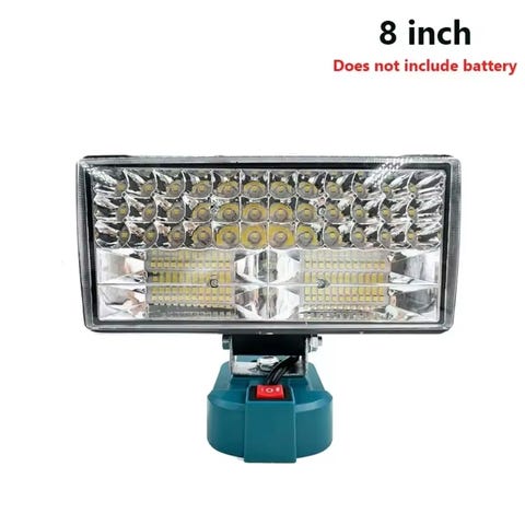 Meget kraftig Lyskaster for Makita 18V batteri 20cm bred. 25W effekt. Tilsvarende 250W halogen lys. Mulighet for å justere lys styrken i 2 nivåer med bryter på lykten.