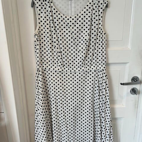 Sommerkjole i mørkeblå, størrelse 44. Kjolen har et polka dots mønster.Fin passform