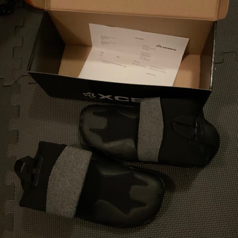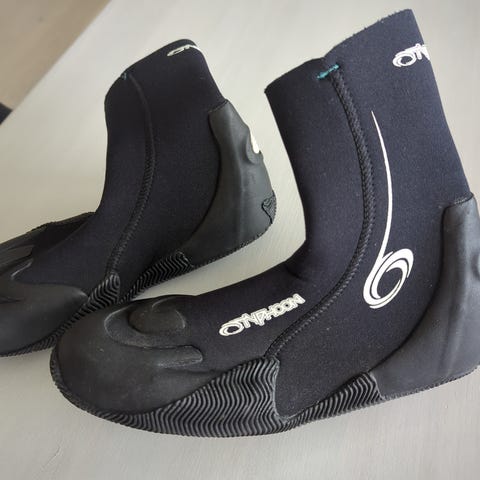 C-Skins Våtdraktsko med 5 mm tykkelse, str. S i barne str. Modellen heter Legend. Her 2 par, skoene er kun brukt en gang. Selges for 300 per stk. str. er 25/26, utvendig mål av såle er ca. 18 cm.