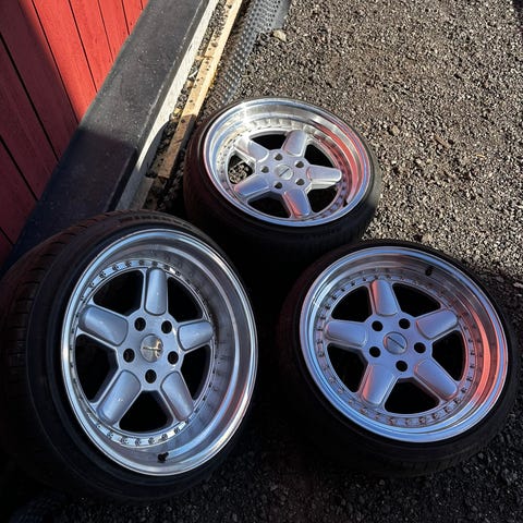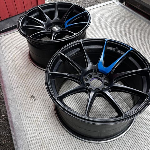 Selger et sett med Xserie hjul, står på piggdekk på dem. Er dekktrykksensor i dem, dekkene har ok med spor. Ingen kast eller sprekker i felgene. Rette og fine.