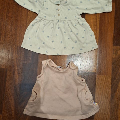Selger en søt kjole med forkle og lue i str 50/56.