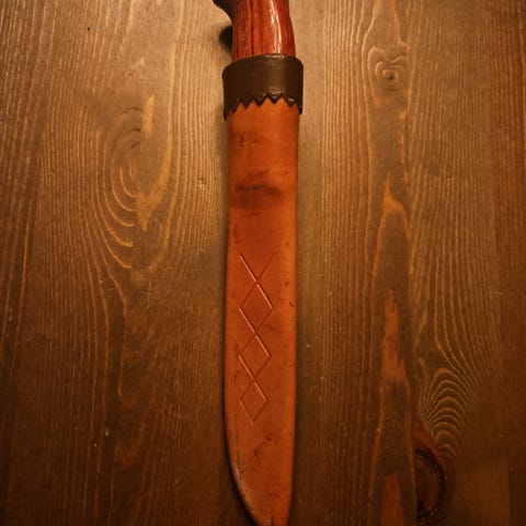 Brusletto Troll 2853 kniv med blad i rustfritt stål og skaft i tre. Leveres med lærslire med dekorative pregninger. Kniven er egnet for friluftsliv og generell bruk.
