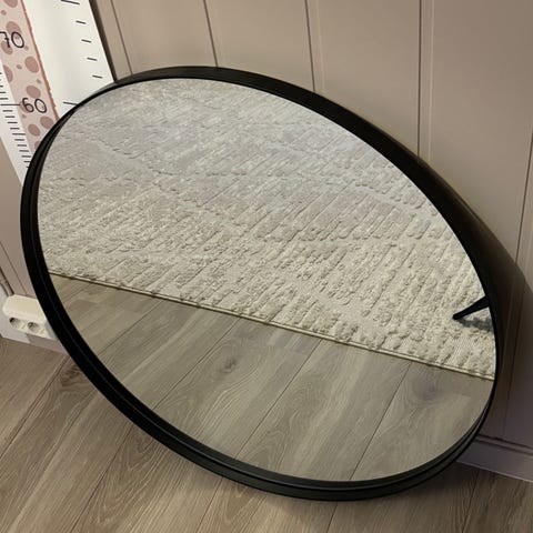 IKEA MARSTAL speil med en diameter på 70 cm. Speilet har en svart ramme og er designet for veggmontering. Passer til ulike rom og innredningsstiler.