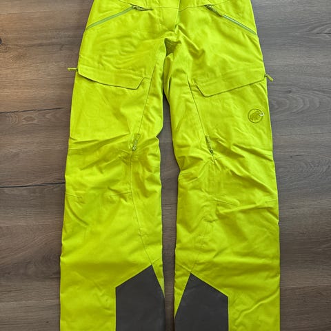 Mammut skallbukse for dame i størrelse 38. Buksen er blå og designet for diverse uteaktivitet- ski - snowboard osv. . Den har 4 lommer med glidelås foran og forsterkede partier nederst på bena. Vidde for skistøvler alpint eller board.