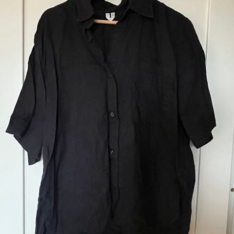 Lett og behagelig skjorte/ lounge wear pysjamasskjorte fra H&M i str. XS. Kan selvsagt brukes som vanlig skjorte og, tenker den blir spesielt behagelig på sommeren. Sateng-aktig stoff, veldig luftig og deilig på. V-ringet. Luksuriøs finish.