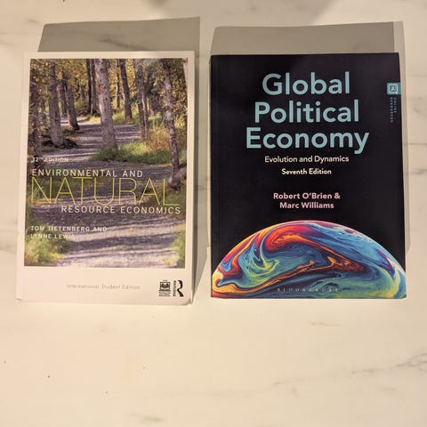 Global Political Economy lærebok med fokus på økonomi og administrasjon, dekker temaer som evolusjon og dynamikk innen global politikk og økonomi. Forfattere: Robert O'Brien og Marc Williams
