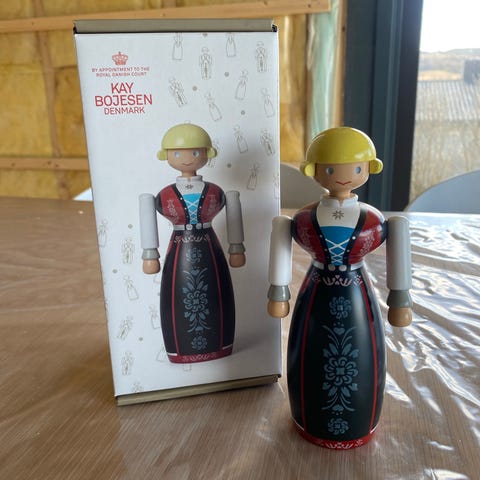 Den kvinnelige Bunad-figuren måler 16 cm, er dreid i FSC-sertifisert bøk og er laget i det høykvalitets håndverket som er typisk for alle Kay Bojesens trefigurer.