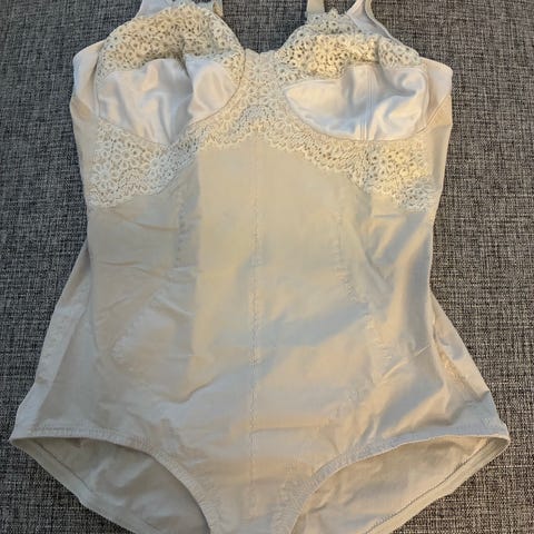 Lekker og ubetydelig brukt body fra Miss Mary. Størrelse 90C. Justerbare polstrete skulderstropper. Bøyler i BH. Blonder. Hemper i skrittet. Elastisk. Nypris ca 900.