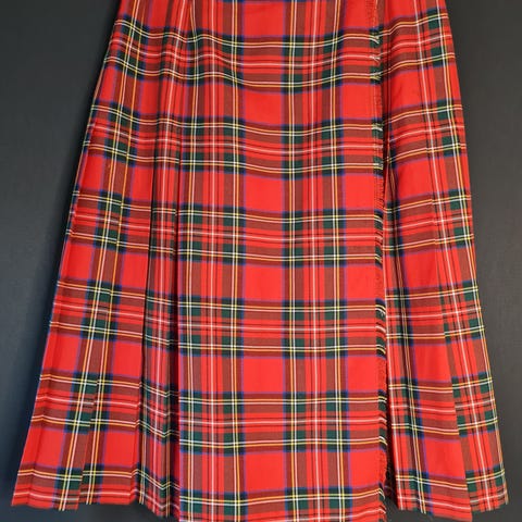 Meget pent retro skotskrutet ullskjørt fra GOR RAY. 100% New Wool. Foret med polyester. Glidelås i siden. Folder. I bra stand. Omkrets liv ca 78 cm. Lengde ca 74 cm.