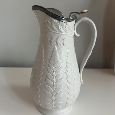 Meget pen gammel engelsk mugge fra Johnsen Bros England. I serien Old Britain Castles. Høyde ca 17 cm. Rommer ca 1L.