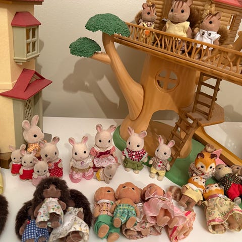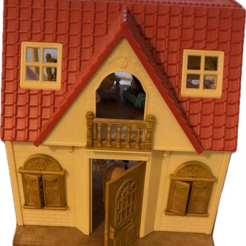 Sylvanian Families hus med 4 familier, møbler og tilbehør. Perfekt som julegave. Ledig til å kjøpe til 19 desember. Lyset funket og det mangler en siden av døren på terrassen. Må hentes!