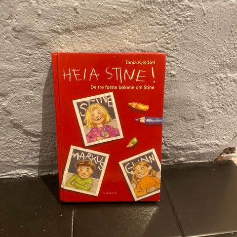 Stine Bok med illustrasjoner av Tania Kjeldset. Inneholder en historie med karakterer i fargerik innbinding.