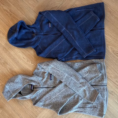 Den har blitt hardt vasket i vaskemaskinen. Har derfor krympet litt i størrelsen og er ikke like fluffy som ny. Er originalt en medium, men har nå blitt mer en størrelse Small.