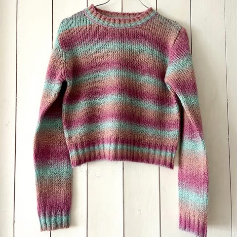 Søt og behagelig genser i fine rosa/lilla ombre-toner. Myk kvalitet som ikke klør, og perfekt for barnehage, skole eller hverdagsbruk. God stretch og normal passform. Pent brukt og i god stand 🌷