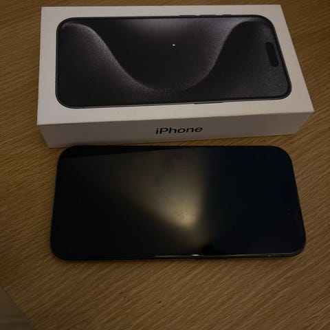Apple iPhone 15 Pro mobiltelefon med 128 GB lagringskapasitet i svart farge.