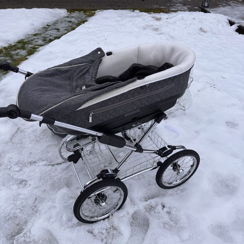 Silver Cross Wave barnevogn i blå farge. Barnevognen har en solid ramme og justerbart håndtak. Egnet for bruk til små barn, med god plass og komfortable materialer. Selges med både bag-del og sports-del.