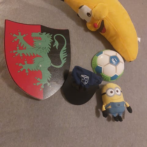 Diverse lekefigurer og to sprettballer