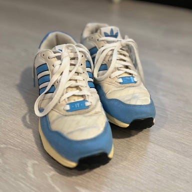 Asics gymsko eller innendørs sko i størrelse 38 med blå og hvit farge. Skoene har mesh-materiale for pusteevne og gummisåle for godt grep. Egnet for generelle sportsaktiviteter. Pent brukt til gym.