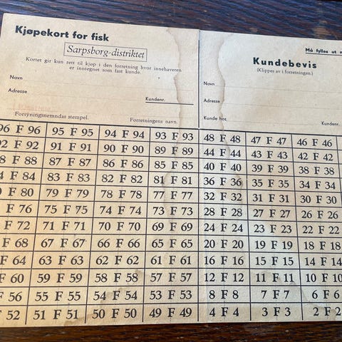 Navn er håndskrevet slik disse kortene ble brukt den gang. Flott til samlere av norsk etterkrigshistorie og rasjoneringsmateriale.