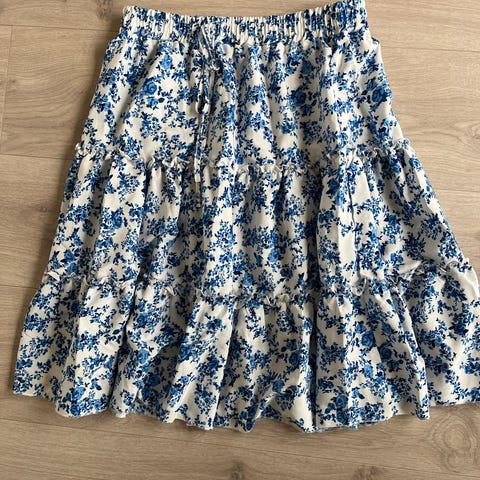 Foret Marineblått skjørt i str. XL, strikk i livet 106 cm linning og lengde 61 cm Kun brukt 2 ganger(for stort ). Kan sendes med Helthjem