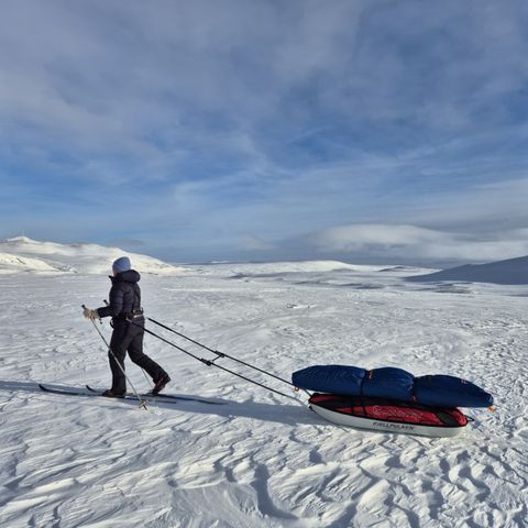Leier ut pariserpulken inkl taudrag, stropper, bedding (sydvang 240l), fjellpulken packbag 155l og trekksele.