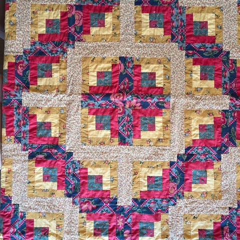 Håndlaget lappeteppe quilt flerfarget bomull