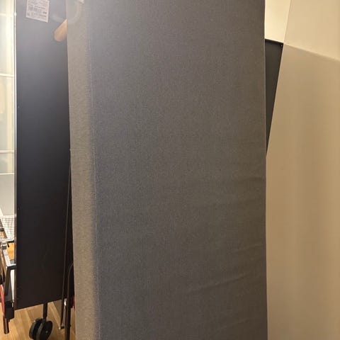 Materialet på sengeoverflaten er skadet, men det er en overmadrass som er god.