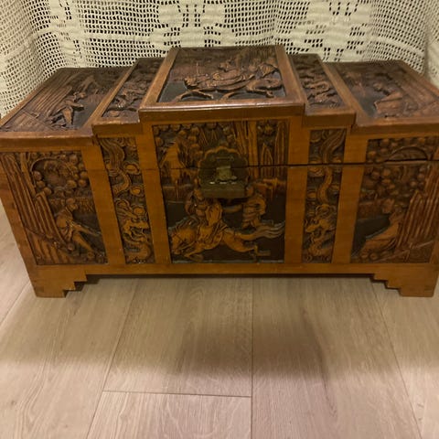 Skrin i tre, brukt til bunadssølv.