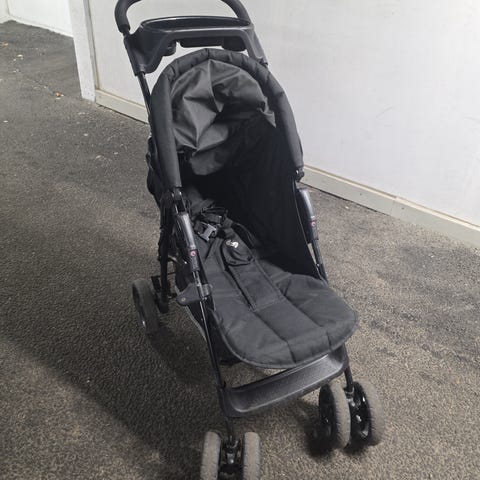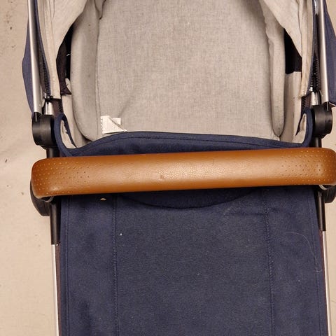 Godt brukt vogn som er brukt som sykkelvogn og trillevogn. Festet til sykkelen er ødelagt, men den fungerer som trillevogn. Hjulene fungerer, men humper litt. Noen hull i stoffet. Se bilder.