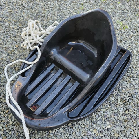 Selger restende utstyr for vintersesongen da barnet vokst ut av disse. Stiga akebrett har ikke lenger belte, rumpeakebrett nesten ubrukt.