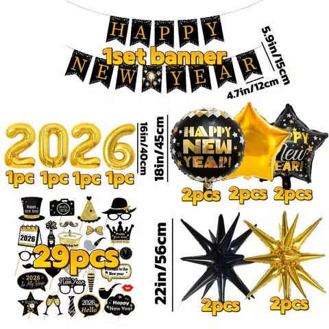 Gjør nyttårsaften stilfull og minneverdig med denne elegante dekorasjonspakken,