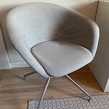 Stolens ryggstøtte er utstyrt med glidelås, noe som betyr at det er mulig å kjøpe nye trekk for å endre stolens uttrykk eller friske dem opp i fremtiden – et møbel for livet!